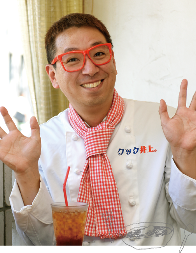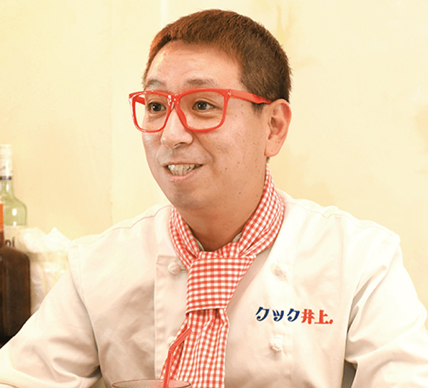 お笑いコンビ「ツインクル」のツッコミ担当。フードコーディネーターの他食育インストラクター、野菜ソムリエ、BBQインストラクター、アスリートフードマイスター、ホームパーティ検定などの資格を活かし、料理芸人「クック井上。」としてテレビや雑誌などで活躍中。